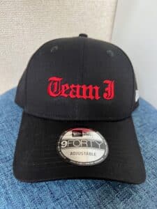 ボディ NEWERA NE404 カラー ブラック 刺繍テーマ オリジナル文字ロゴ刺繍 刺繍色 レッド こだわりポイント 細めの書体でオリジナル文字刺繍